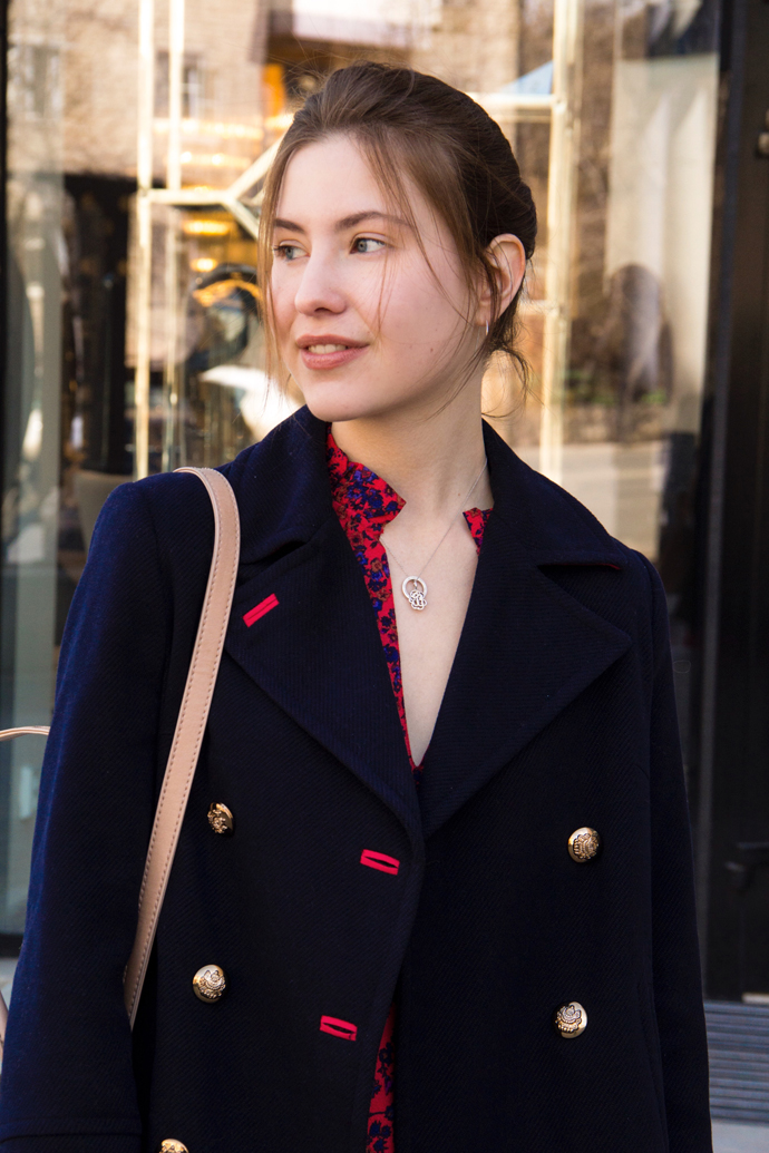 Что касается внешних проявлений женственности, то я чувствую себя прекрасно как в джинсах и кедах, так и в летящих платьях. Главное, чтобы в одежде мне было комфортно и она полностью отражала мой стиль. Так, например, случилось с этим платьем. Меня довольно редко можно увидеть в юбке или ярких цветах, но платье идеально вписалось в мой гардероб. Несмотря на сочетание красного и синего, цветочный принт и оборки, оно сохраняет в себе французский шик и простоту, которые я обычно и ищу в одежде. Добавим пальто и чёрные ботинки и вуаля — готов весенний образ для субботнего бранча.